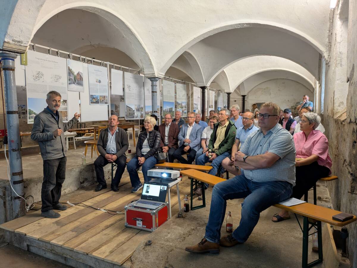 Heimertingen, 26. Juni 2025 – Rund 40 Interessierte folgten der Einladung der ILE-Gemeinden Bayerisches Illertal in den Sennhof Heimertingen. Der ehemalige Stall mit seinem charakteristischen böhmischen Gewölbe bot den idealen Rahmen für den Themenabend rund um kreative Baukultur.