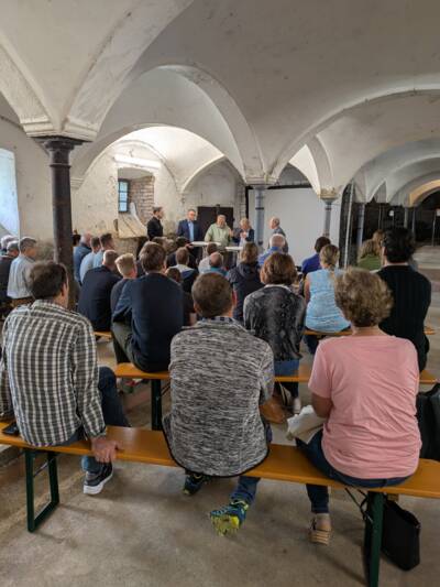 Zu Beginn der Veranstaltung wurden die vier Bürgermeister der beteiligten ILE-Gemeinden interviewt. Alle Bürgermeister sind davon überzeugt, dass in Ihren Gemeinden Handlungsbedarf besteht und es bereits jetzt Zeit wird, dem Leerstand entgegenzuwirken. Sie sehen die Potenziale und hoffen, mit Blick in die Zukunft, in absehbarer Zeit einen Teil der Leerstände wieder aktiviert und die Ortskerne erneut belebt zu haben.