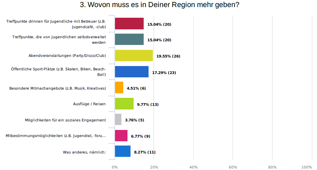 Zudem beinhaltete die Jugendumfrage eine Frage, bei der 3 Wünsche für die Region genannt werden konnten.